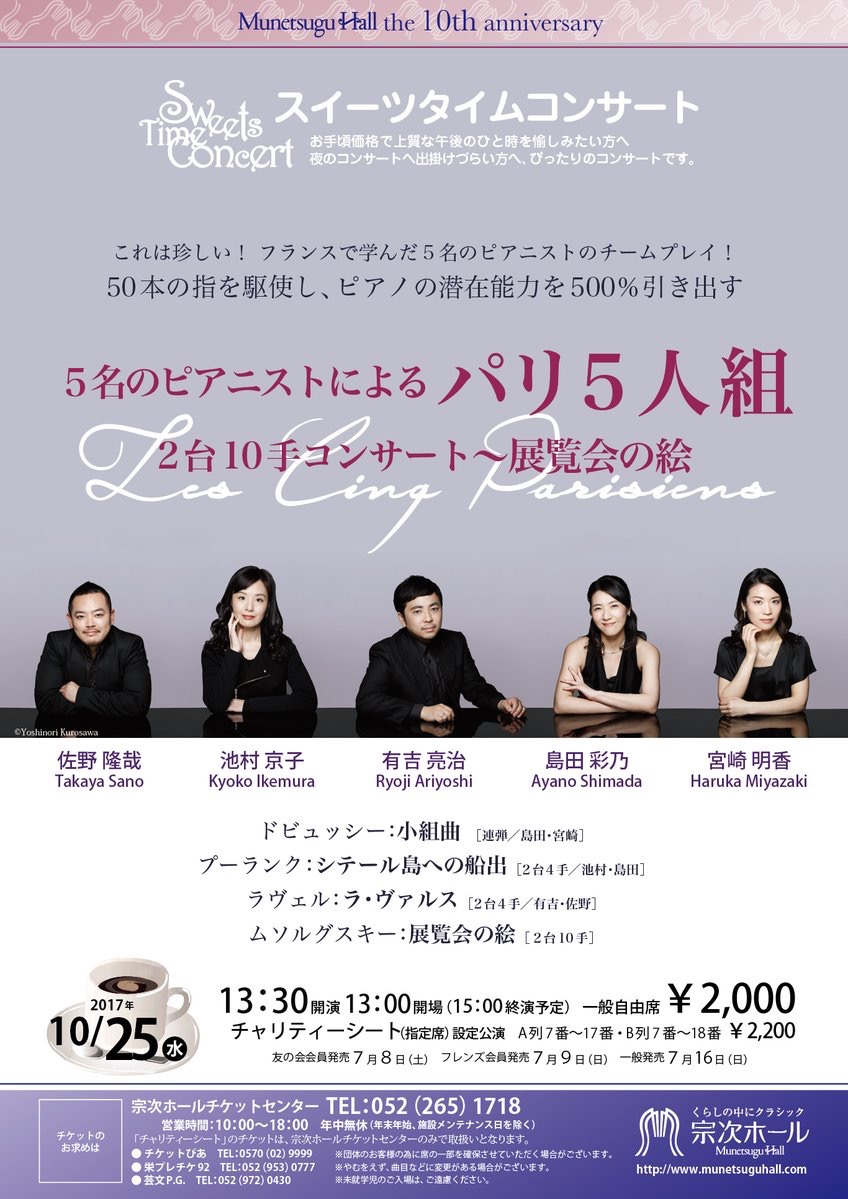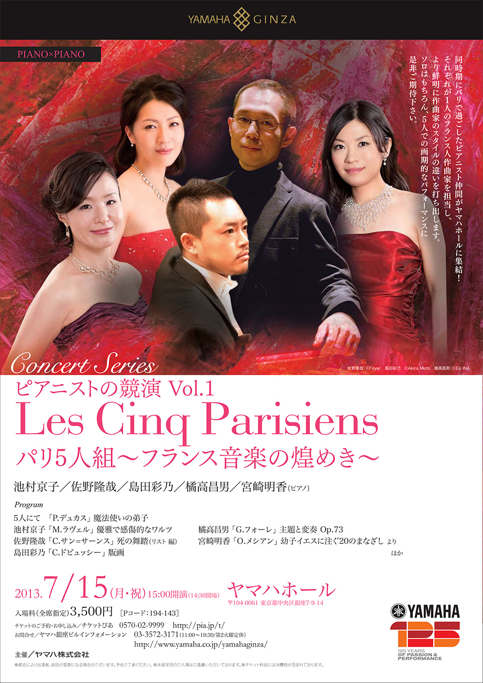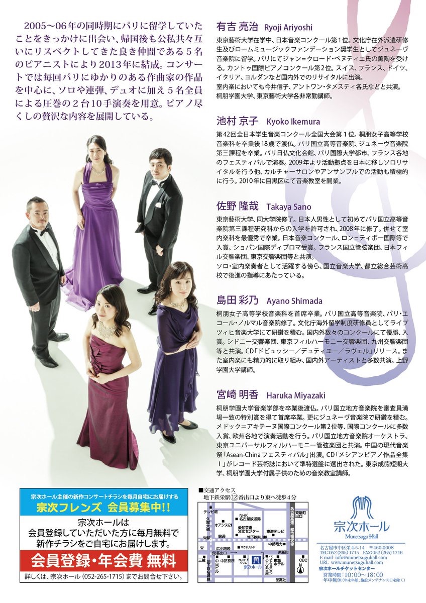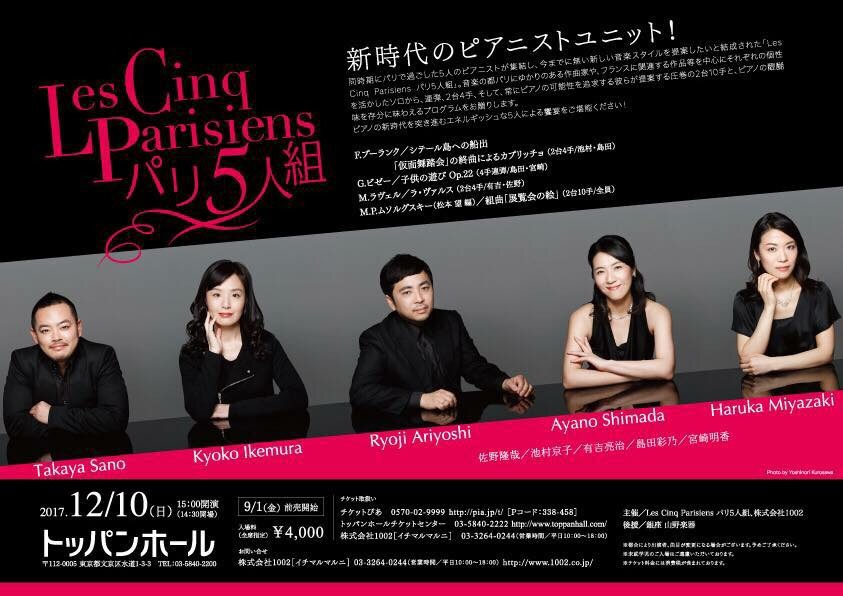 - 留学時代からの友人たちで結成した「パリ5人組」演奏会も、今回で3回目となりました。華やかなピアノの祭典をどうぞお聴き逃しなく!