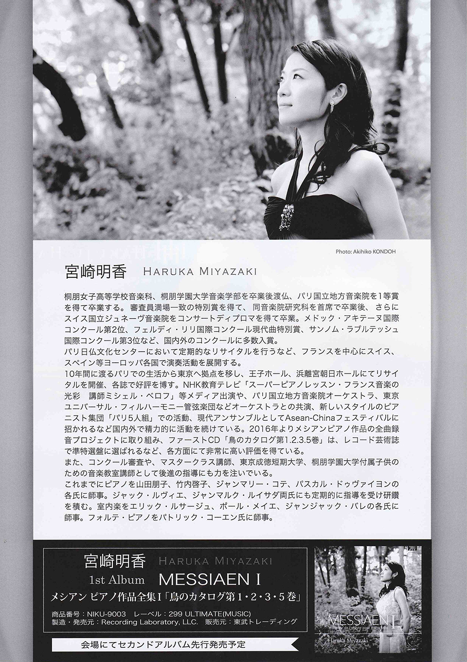 「メシアンピアノ作品全集Ⅰ 」CD発売記念 宮崎明香 サロンコンサート |